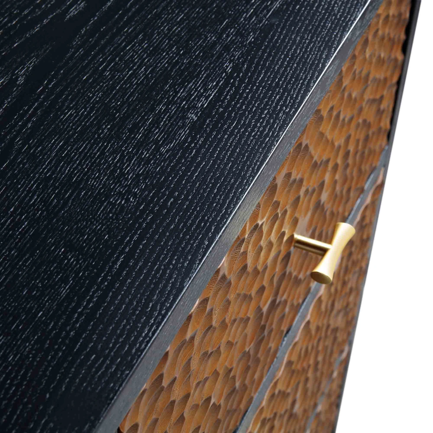 - Boasting modern classic appeal, our Bianca sideboard features chip carved drawer fronts in antique bronze colour with black stained wood frame.