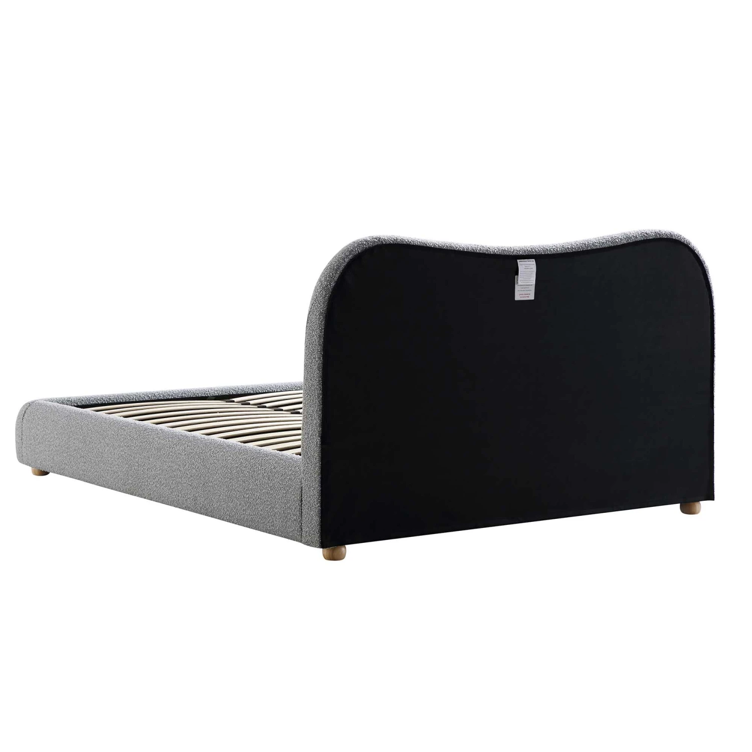 - Our Egerie bed features inviting curved silhouette, upholstered with sumptuous mist grey colour boucle fabric for a chic, cosy place to relax.