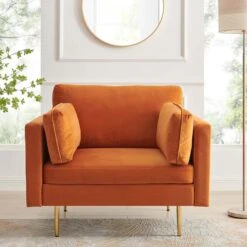 - Complete the look: Pictured with our versatile Pollie Orange Velvet Storage Stools is our beautiful Okja Ecru Faux Shearling Accent Chair.
